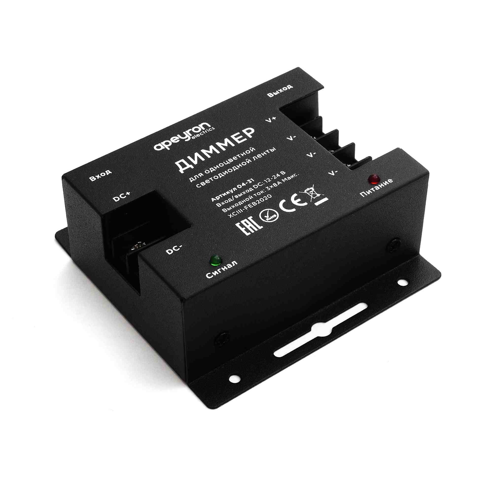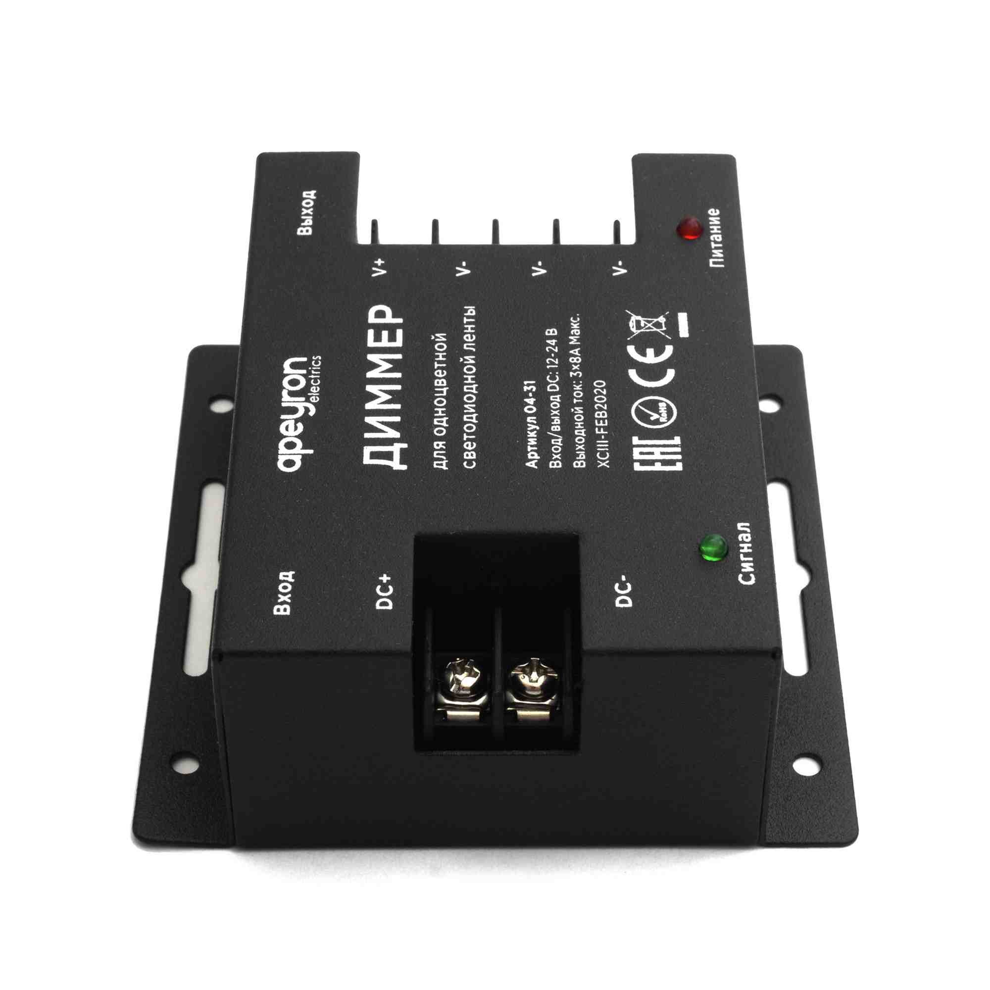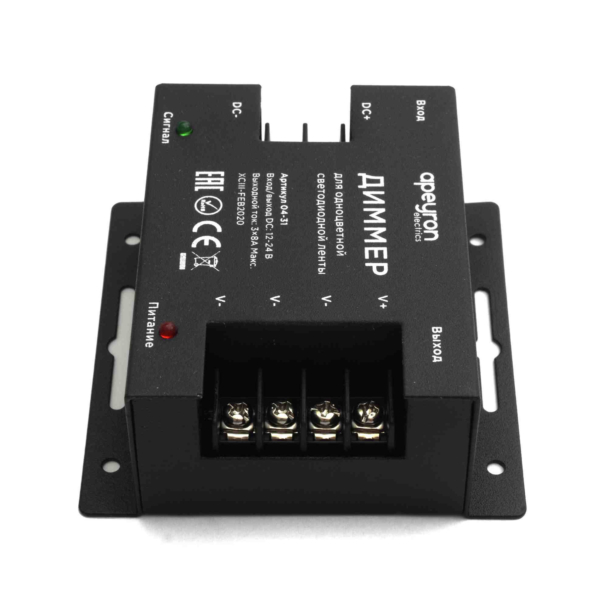 Диммер для светодиодной ленты Apeyron 12/24В 288/576Вт пульт 04-31✖Добавить к сравнениюПерейти к сравнению