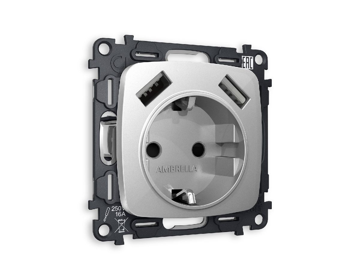 Комплект механизма розетки 2USB A+A 18W (быстрая зарядка) с/з Ambrella Volt Omega MO409010✖Добавить к сравнениюПерейти к сравнению