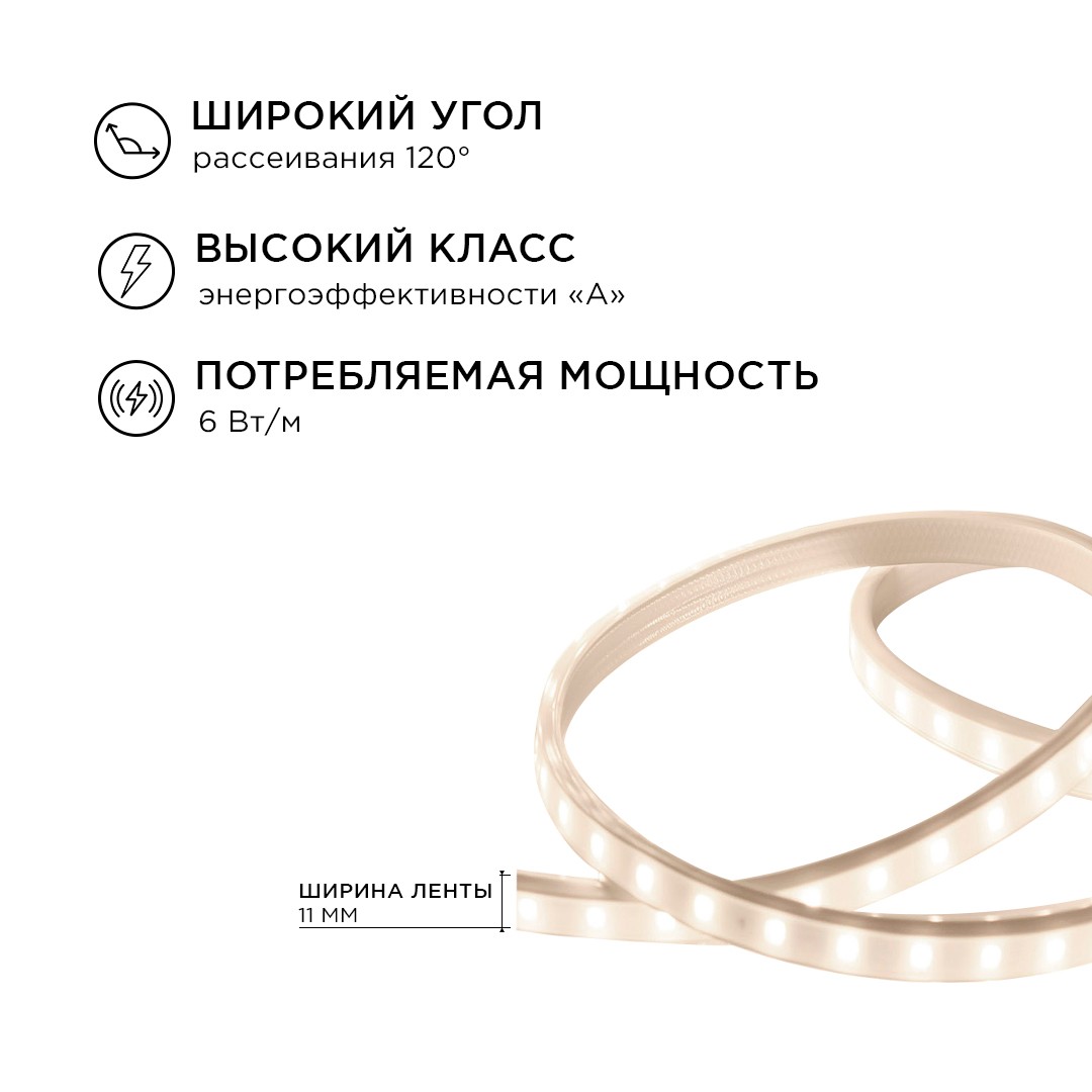 Комплект светодиодной ленты Apeyron 220В 6Вт/м smd2835 60д/м IP65 5м 3000К (сетевой шнур, заглушка, крепежи) 10-58✖Добавить к сравнениюПерейти к сравнению