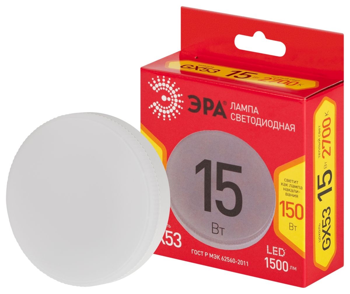 Лампа светодиодная Эра RED LINE LED GX-15W-827-GX53 R 15Вт 2700K✖Добавить к сравнениюПерейти к сравнению