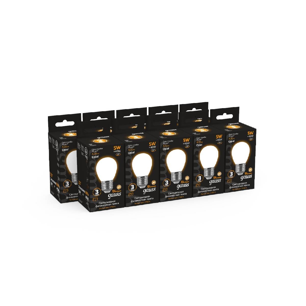 Лампа светодиодная филаментная Gauss E27 5W 2700К матовая 105202105✖Добавить к сравнениюПерейти к сравнению