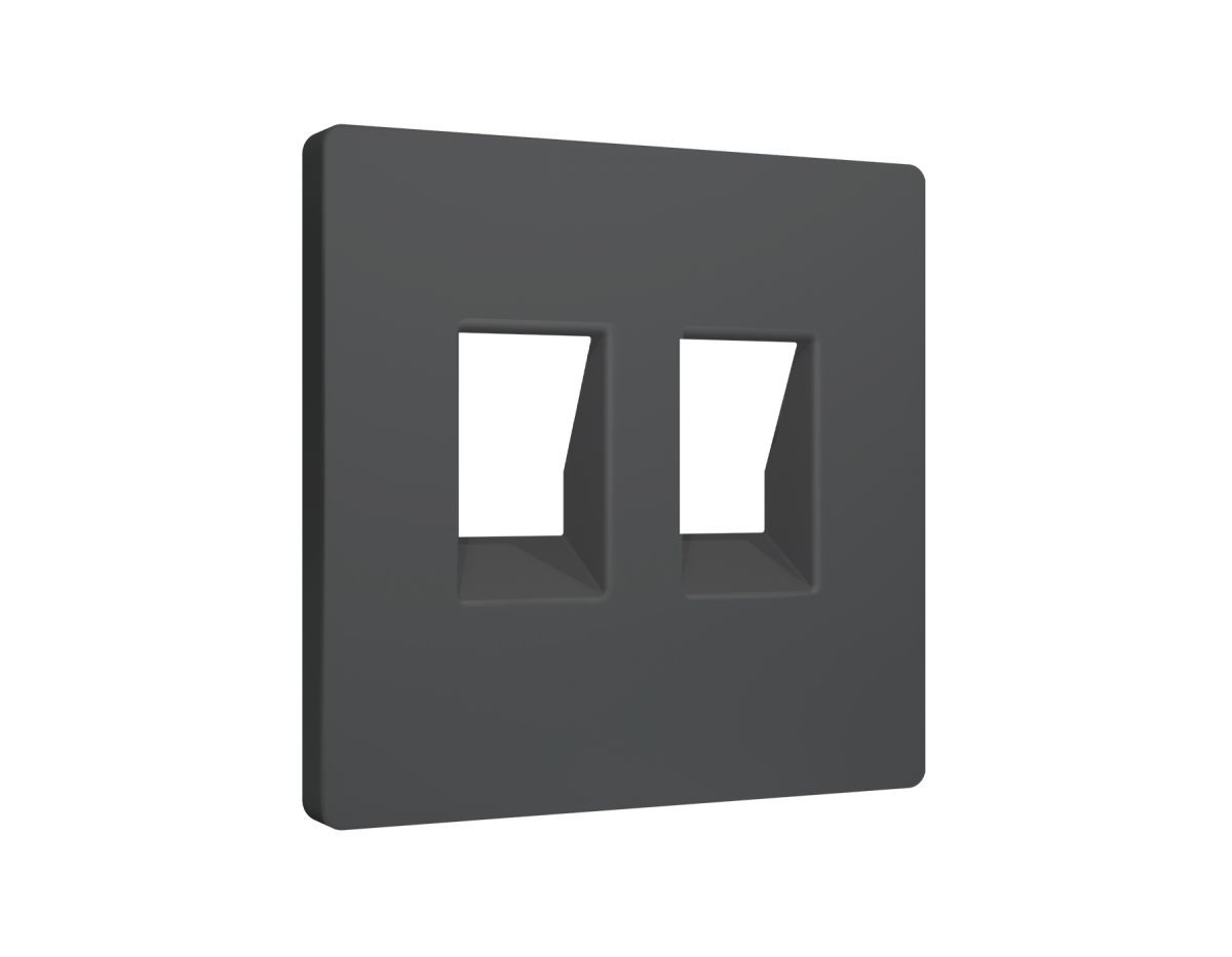 Лицевая панель Alfa (Графит мягкое касание) для компьютерной/телефонной двойной розетки RJ-45/RJ-11 Quant Ambrella Volt AP9121✖Добавить к сравнениюПерейти к сравнению