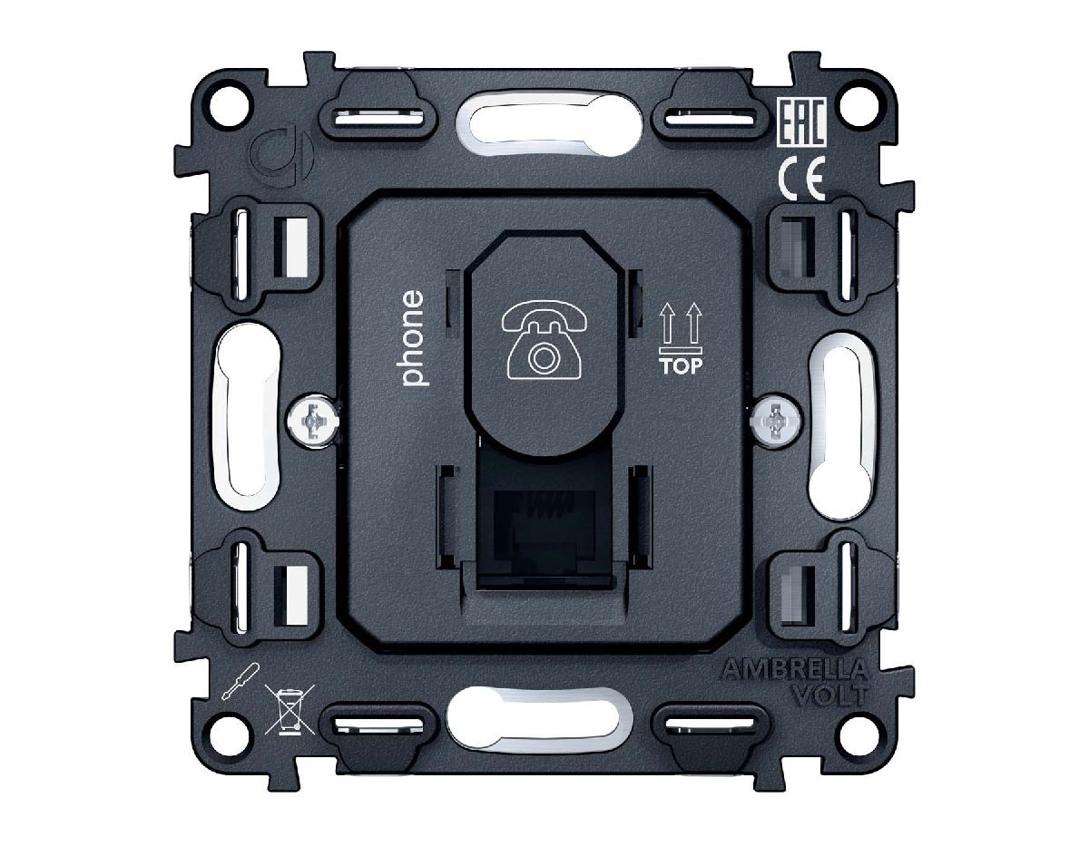 Механизм телефонной розетки RJ-11 (4P4C) с автоматической защитной шторкой Ambrella Volt Quant VM190✖Добавить к сравнениюПерейти к сравнению