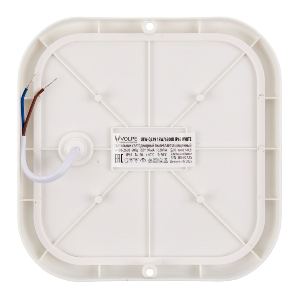 Накладной светильник влагозащищенный Volpe ULW-Q229 18W/6500K IP65 WHITE UL-00013191✖Добавить к сравнениюПерейти к сравнению
