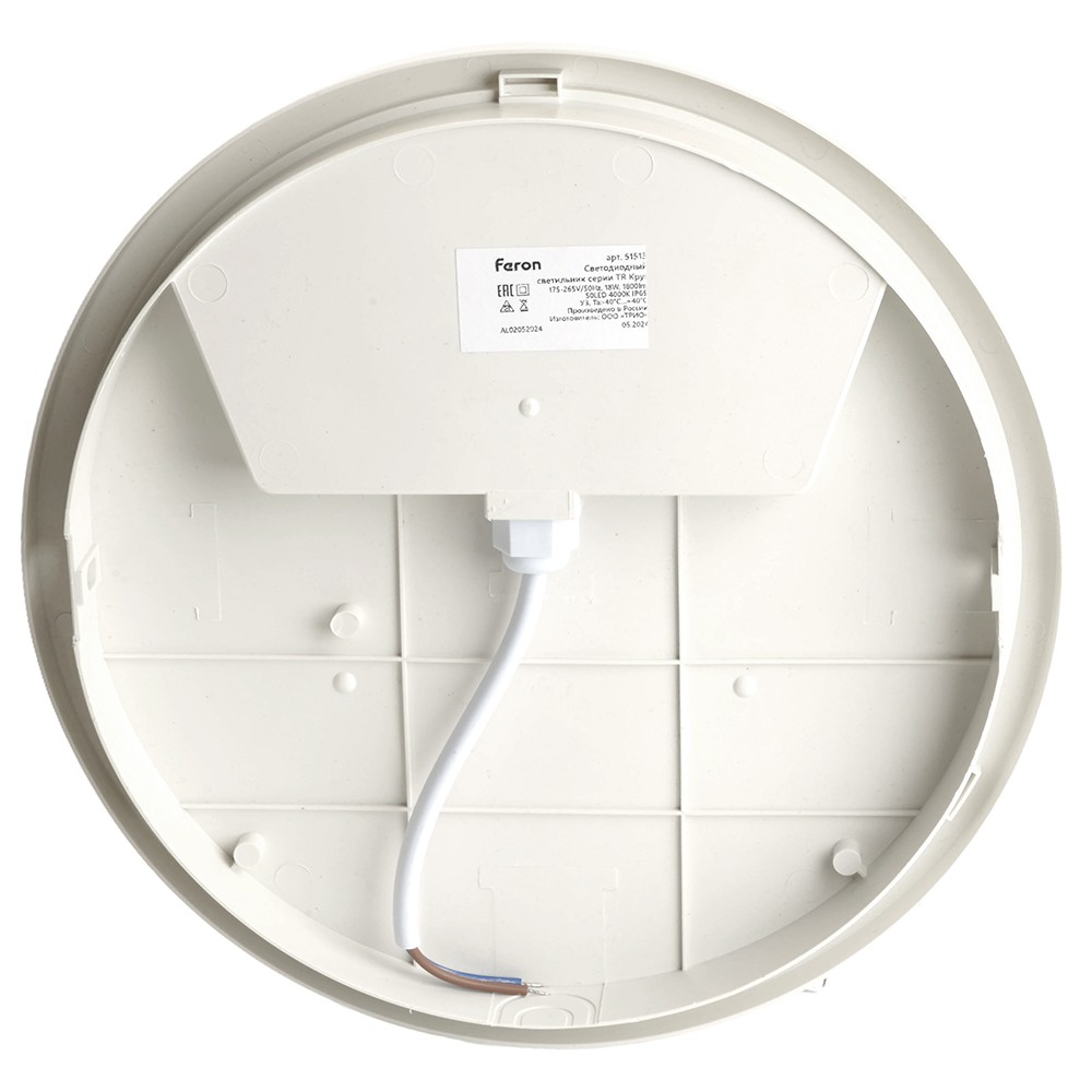 Настенно-потолочный светильник Feron 51513 Светодиодный светильник серии TR ЖКХ Круг 18Вт, 4000К, опал, IP65✖Добавить к сравнениюПерейти к сравнению