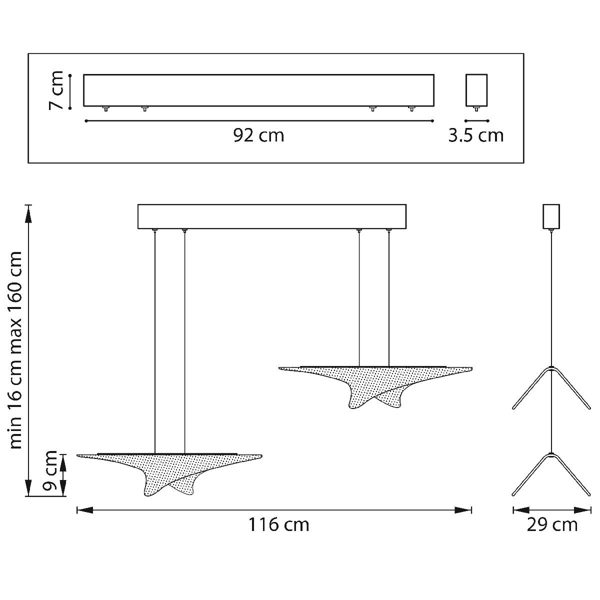 Направление абажуров/плафонов | Вниз |