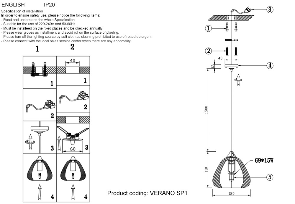 Длина подвеса в мм | 1500 |