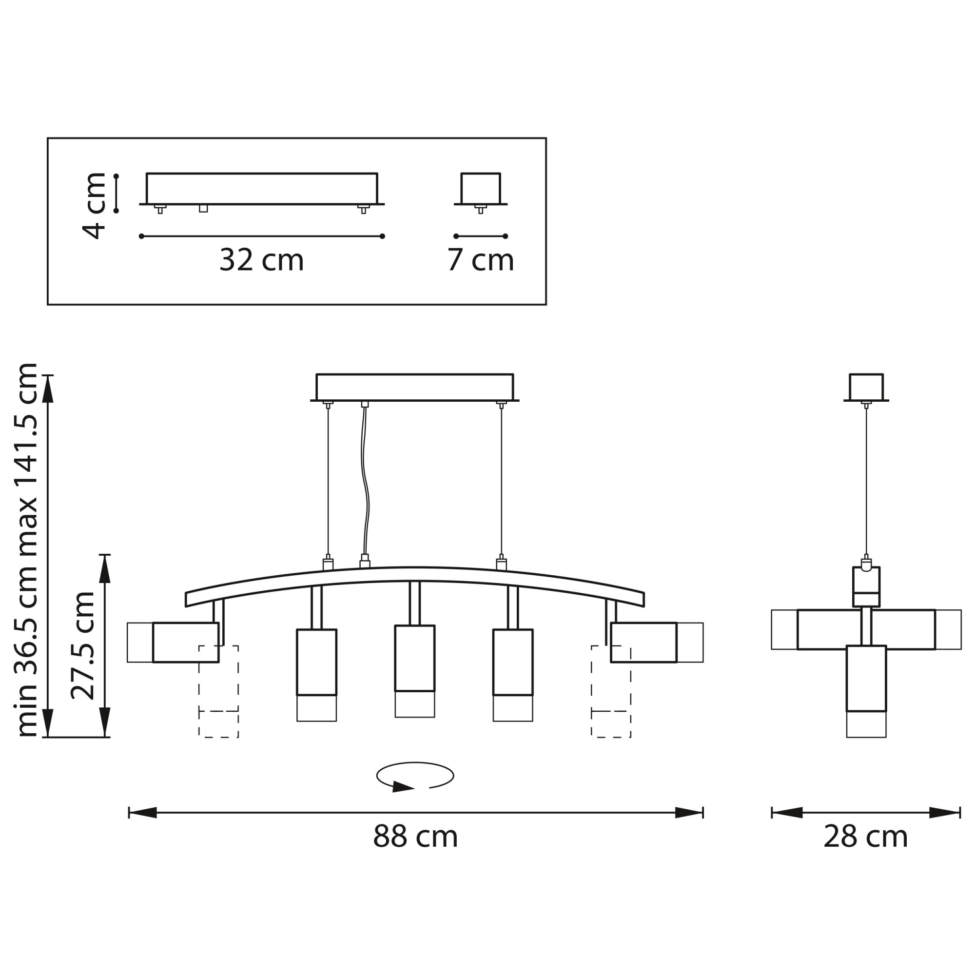 Направление абажуров/плафонов | Поворотное |