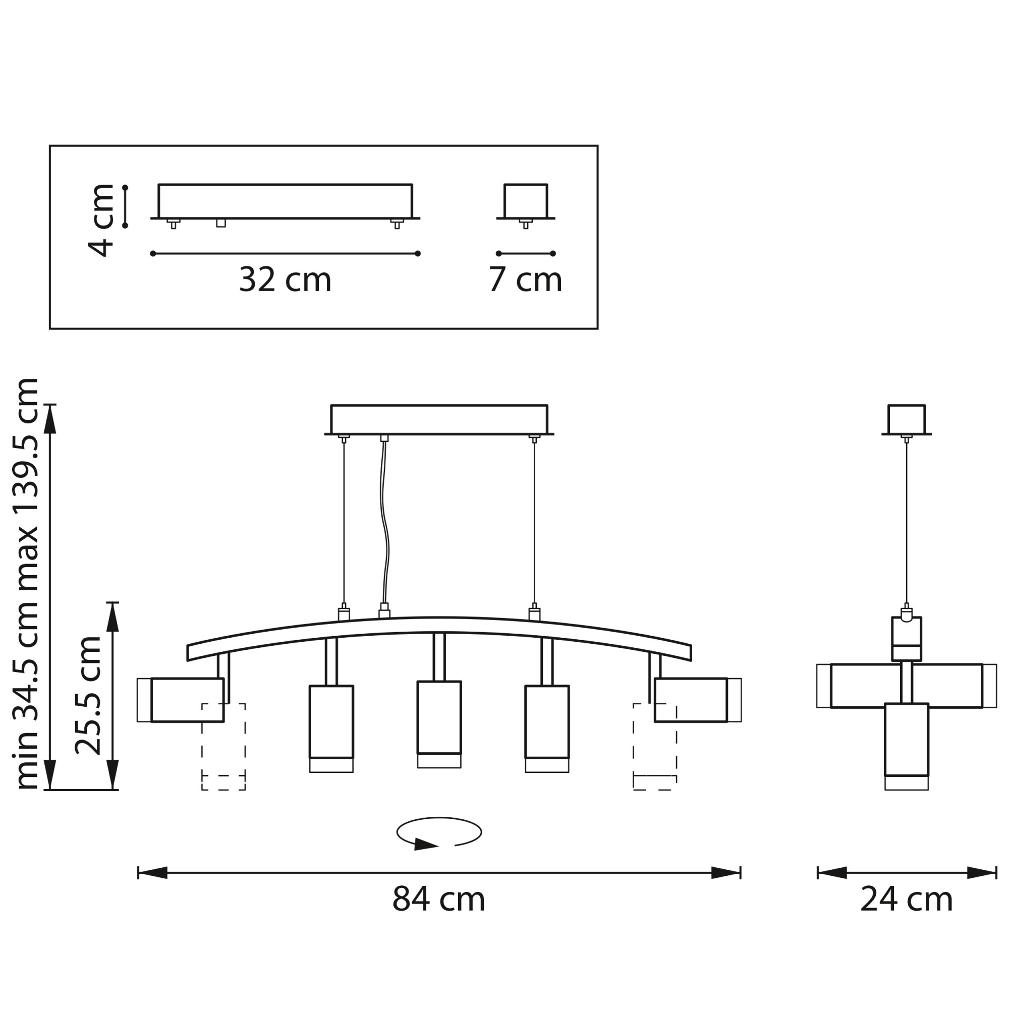 Направление абажуров/плафонов | Поворотное |