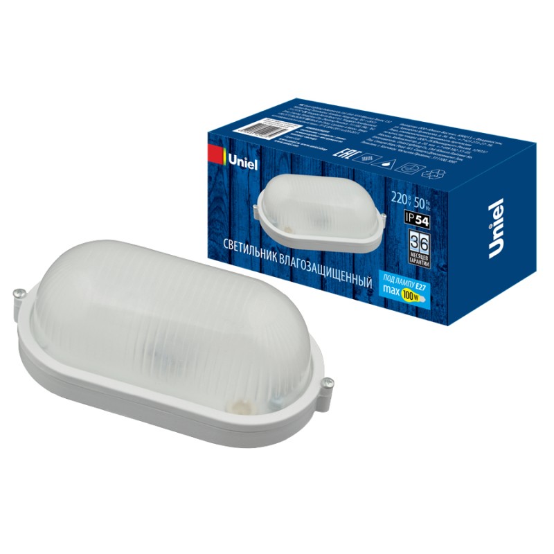 Потолочный светильник Uniel UWL-O01 100W/E27 IP54 WHITE Овал✖Добавить к сравнениюПерейти к сравнению