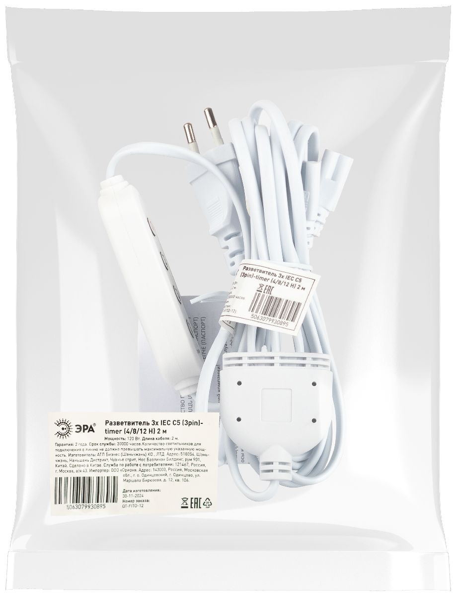 Разветвитель сетевой для линейных светильников Эра 3х IEC C5 3pin+timer (4/8/12 H) 2 м Б0066949✖Добавить к сравнениюПерейти к сравнению