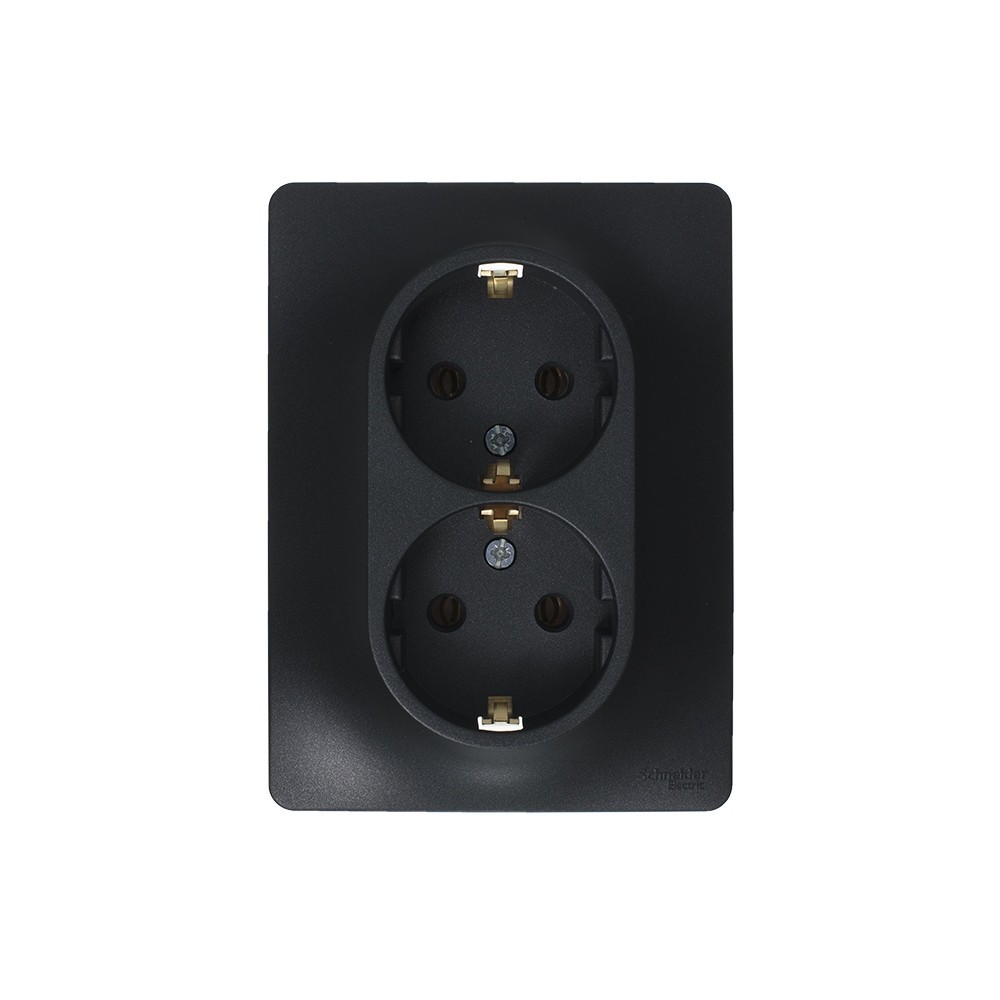 Розетка 2-ая с/з, 16А (в сборе) Systeme Electric Glossa Антрацит GSL000724✖Добавить к сравнениюПерейти к сравнению
