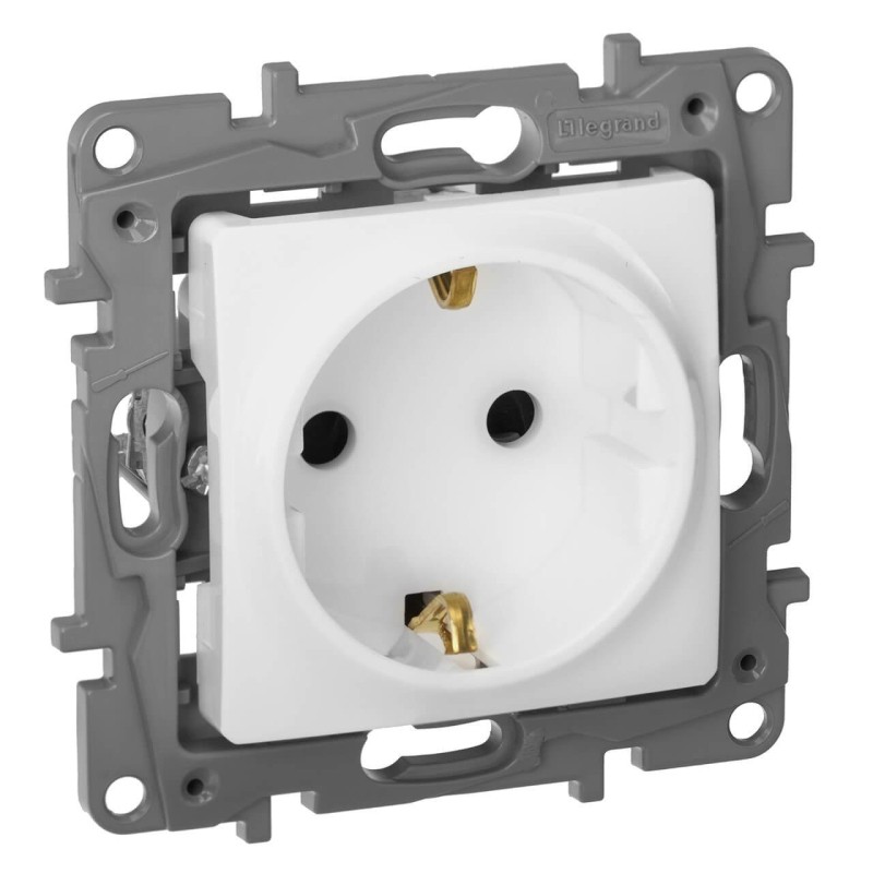 Розетка 2К+З Legrand Etika 16A 250V с/з со шторками винтовой зажим немецкий стандарт белый 672222✖Добавить к сравнениюПерейти к сравнению