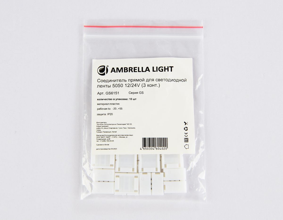Соединитель прямой для светодиодной ленты 5050 12/24V (3 конт.) GS6151 (10шт) Ambrella Light Illumination GS6151✖Добавить к сравнениюПерейти к сравнению