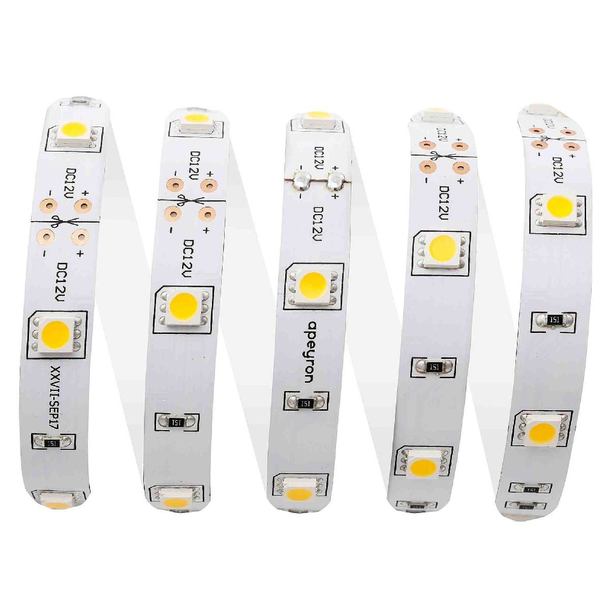 Светодиодная лента Apeyron 12В 5050 7,2Вт/м 3000К 600Лм/м 5м IP20 00-437✖Добавить к сравнениюПерейти к сравнению