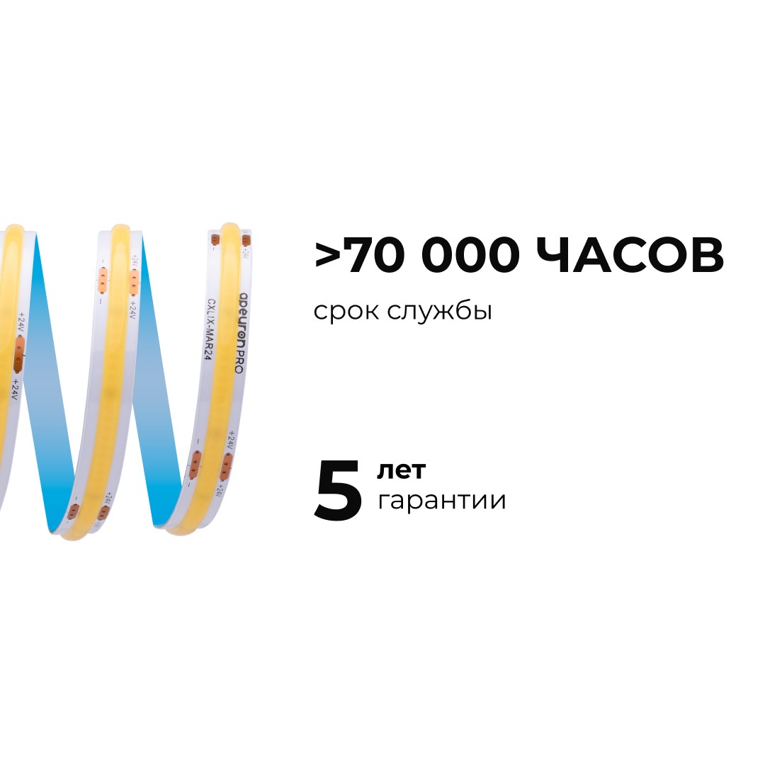 Светодиодная лента Apeyron 24В COB 15Вт/м 4000К 10м IP20 00-484✖Добавить к сравнениюПерейти к сравнению