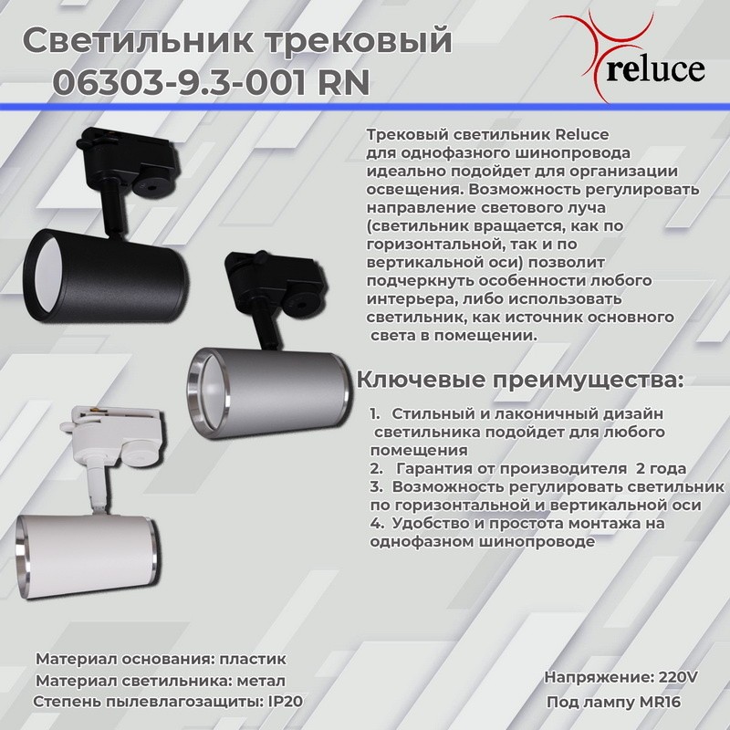 Трековый однофазный светильник Reluce 06303-9.3-001RN MR16 SL+CR✖Добавить к сравнениюПерейти к сравнению