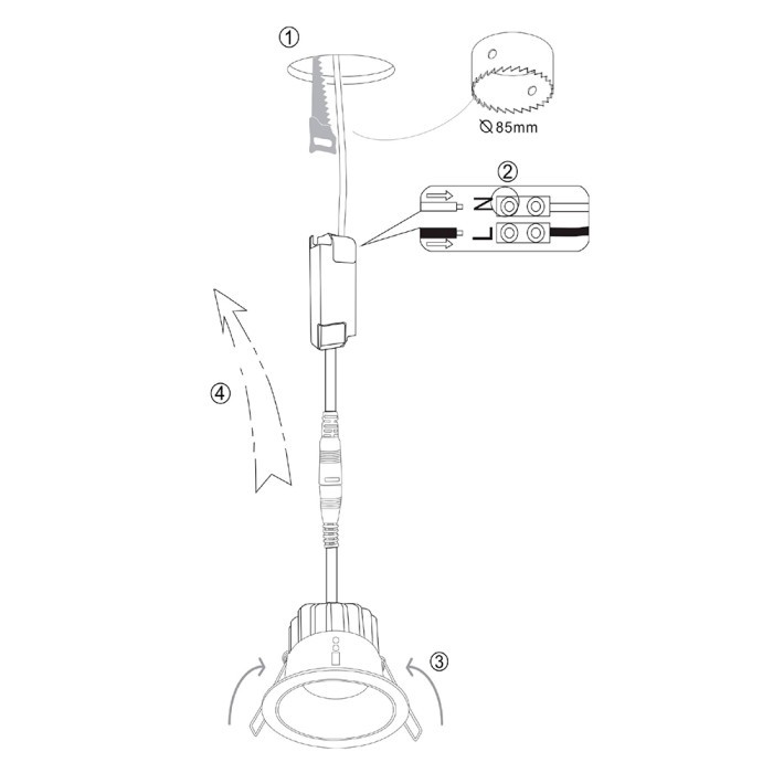 Диаметр врезного отверстия, мм | 85 |