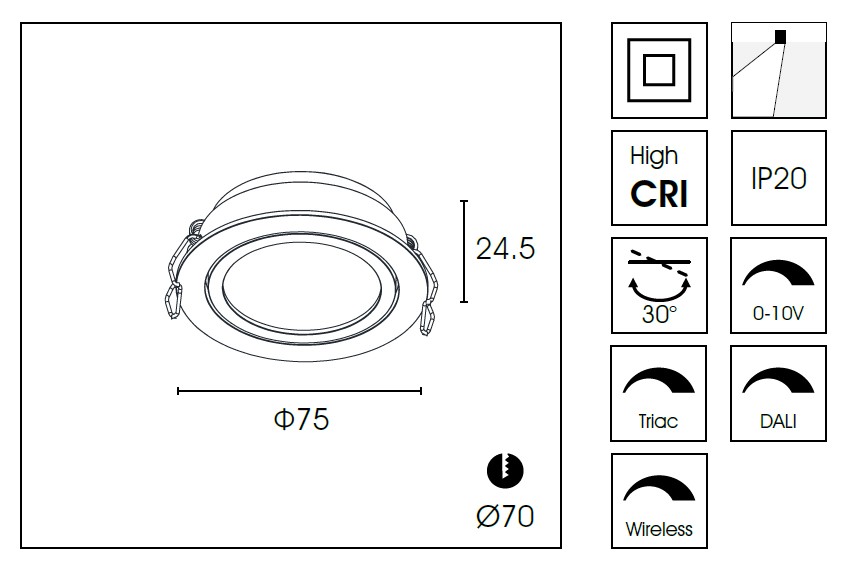 Диаметр врезного отверстия, мм | 70 |