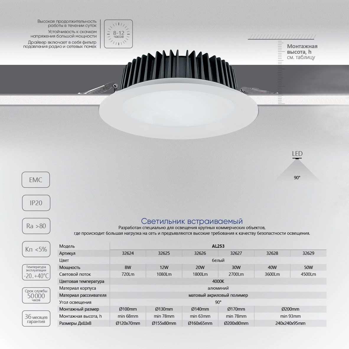 Цветовая температура | 4000 |