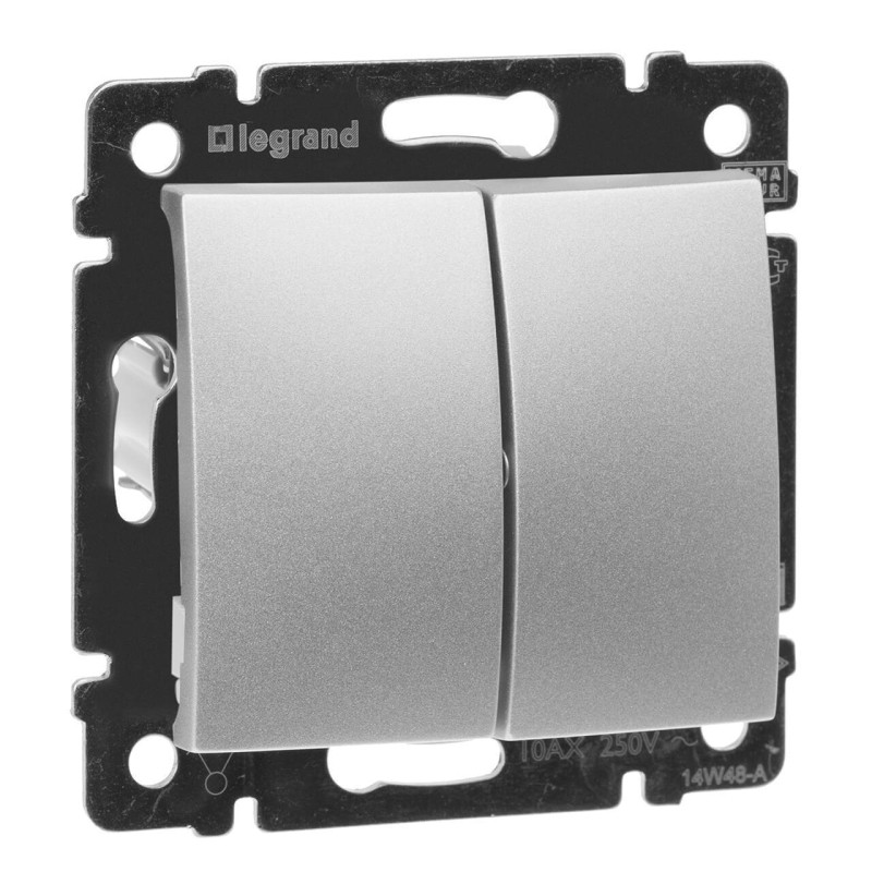 Выключатель двухклавишный Legrand Valena 10A 250V алюминий 770105✖Добавить к сравнениюПерейти к сравнению