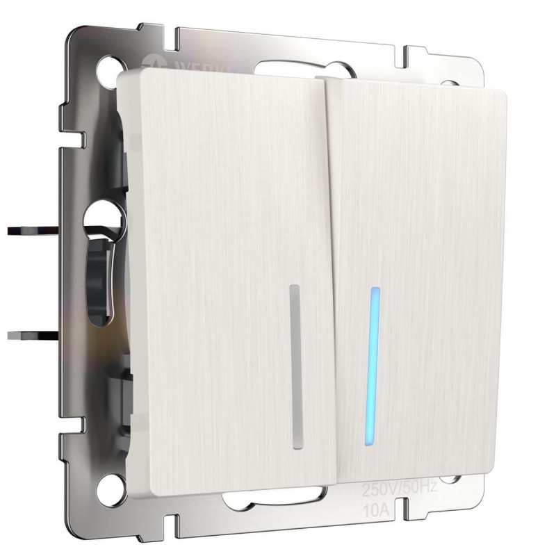 Выключатель двухклавишный с подсветкой Werkel перламутровый рифленый W1120113 4690389160905✖Добавить к сравнениюПерейти к сравнению