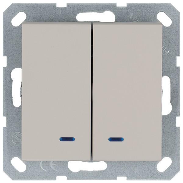 Выключатель двухклавишный со светодиодами 10A 250V с накладкой, цвет Тауп Jasmart G3023NT✖Добавить к сравнениюПерейти к сравнению