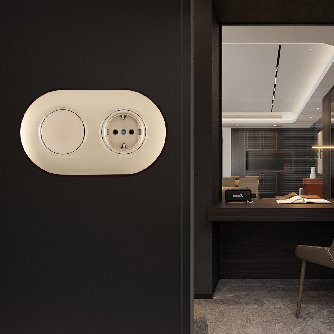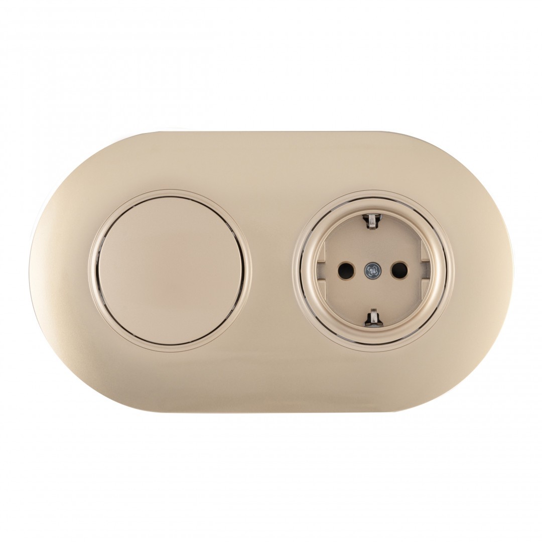 Выключатель круглый одноклавишный с розеткой с/з и шторками Arte Milano SET08-2-40-1-30-1 shampan✖Добавить к сравнениюПерейти к сравнению